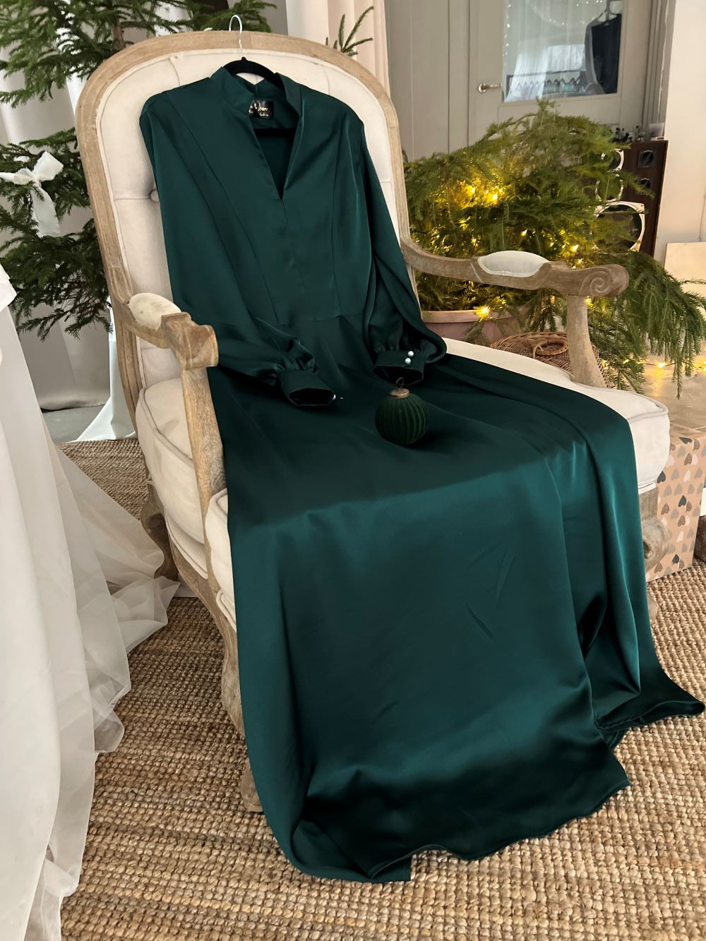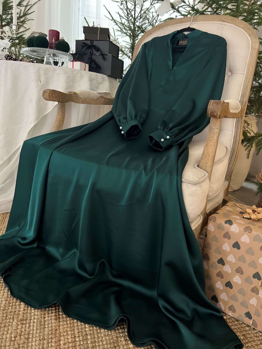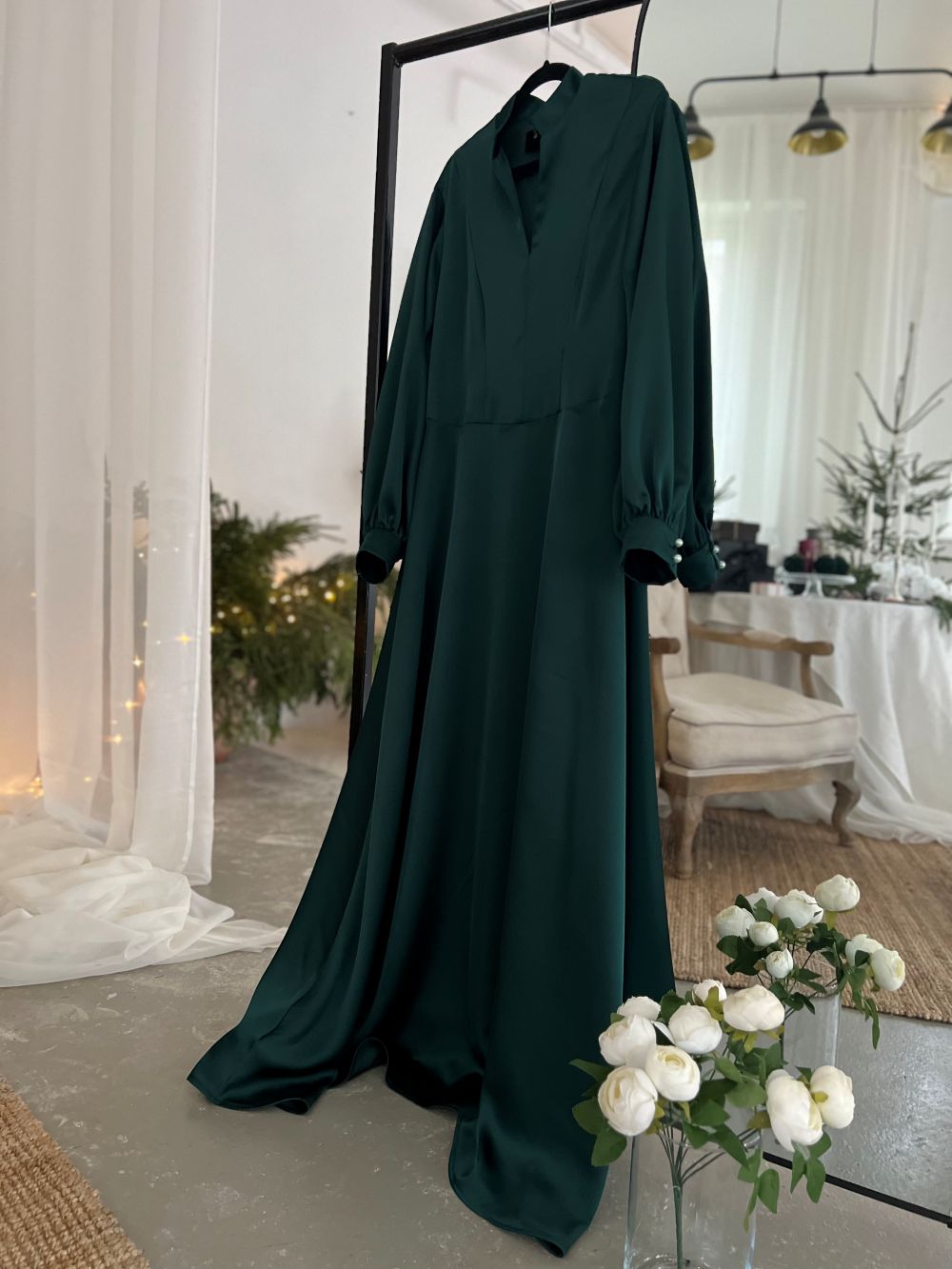 Satīna kleita brīvi krītoša , eleganta .